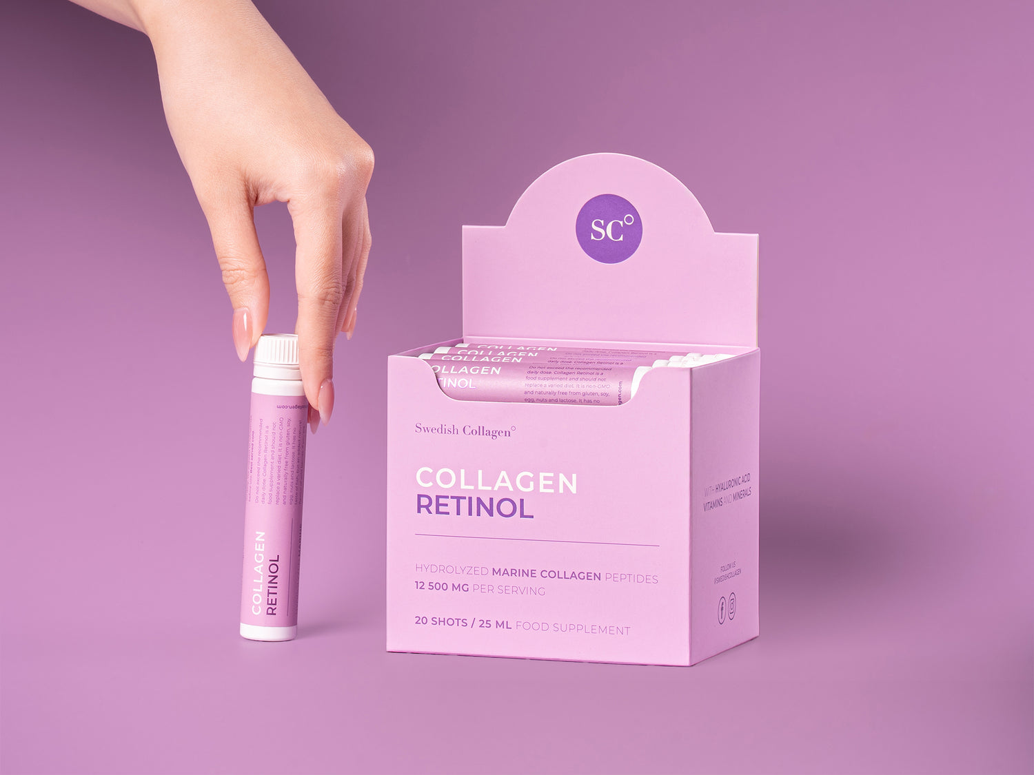 Die tägliche Einnahme von nur 25 ml Collagen Retinol Shot hilft, Ihren Kollagenspiegel aufzufüllen und sorgt für glattere Haut, kräftigeres Haar und gesündere Nägel.