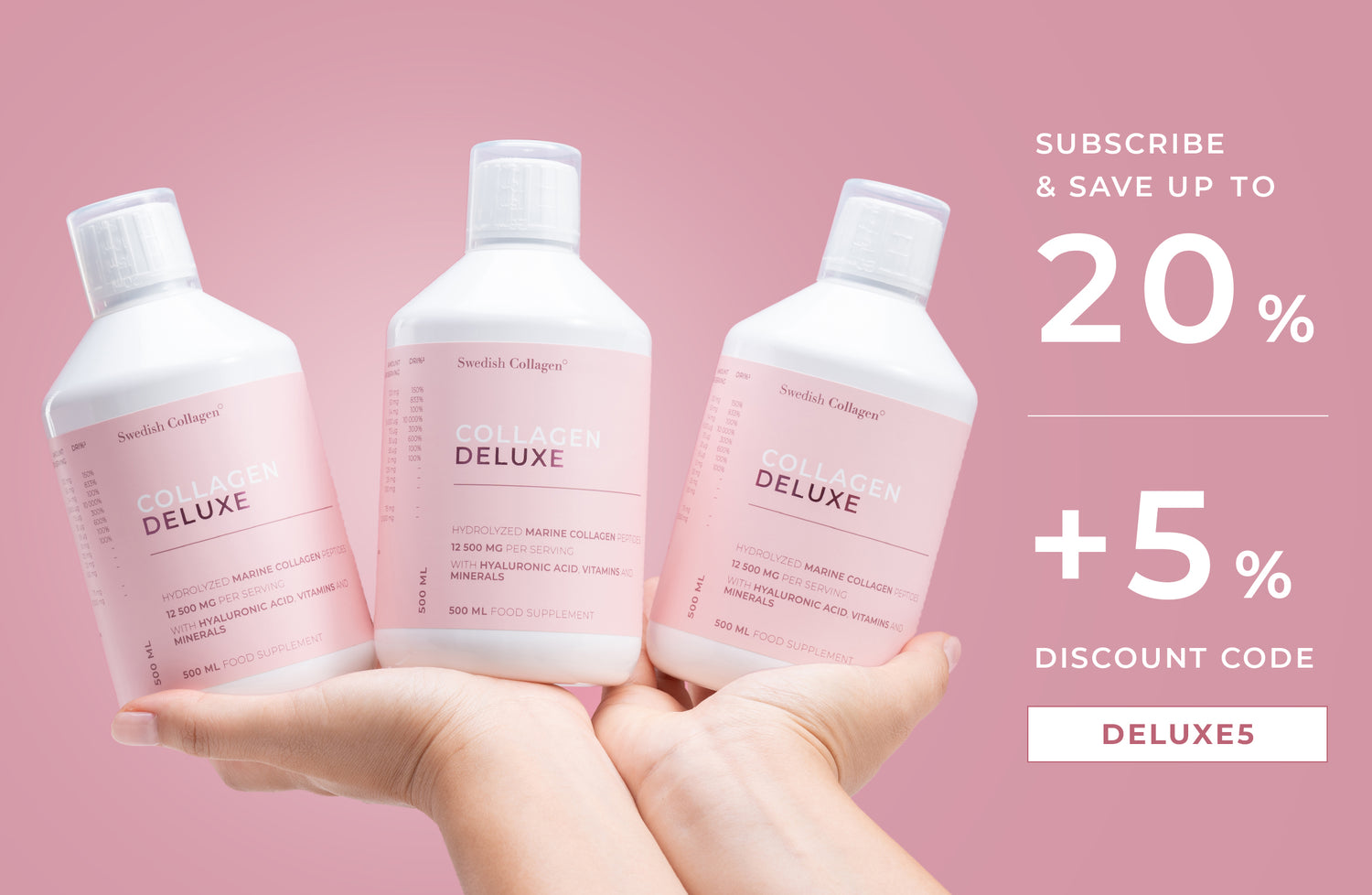 When you subscribe to deluxe collagen products. Get up to 20% off plus 5% discount code on top!